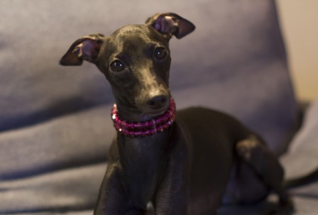 首の長いイタグレさんのおされのポイントは首輪だと思ってます。 特に多頭飼いだから、首輪がちょっとおされだとかわいさもアップする? と願って、前々から欲しいなって思ってたビーズの首輪ゲットしてみました♪ こちらのお店→GDオリジナルドッグサプライズさんはイタグレお友達さんの間でも流行ってるような?! なんだかビーズの色がすんごいいっぱいあって、優柔不断の私は悩むこと約1ヵ月半、 結局単色で色違いにしてみましたぁ~。 まずはモナさん。ルビーって色です。 そして、チモさん、アメジストって色です。