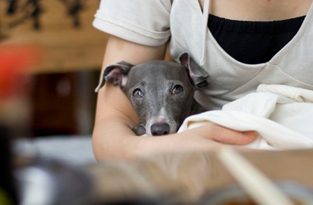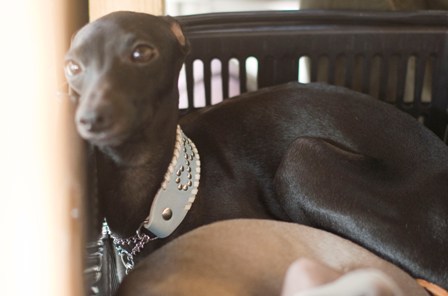 とりあえず、テーブル下の荷物入れのカゴに非難っ